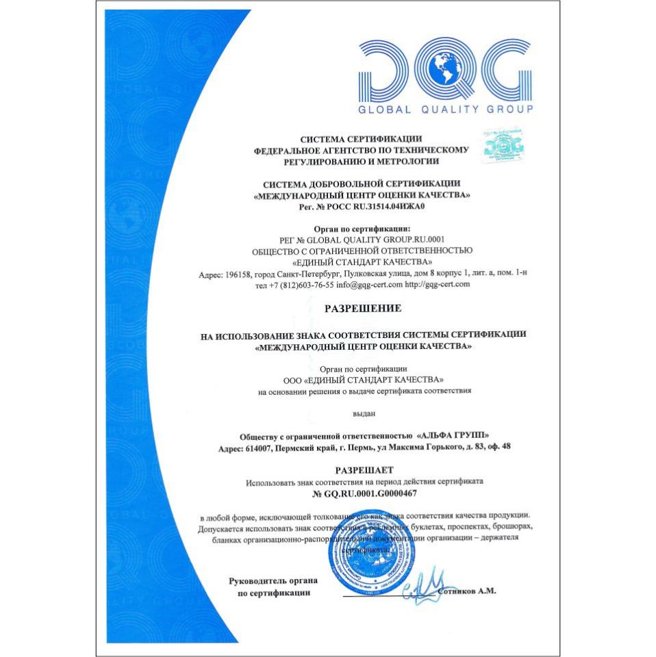 Сертификат соответствия ISO 9001 - 2015