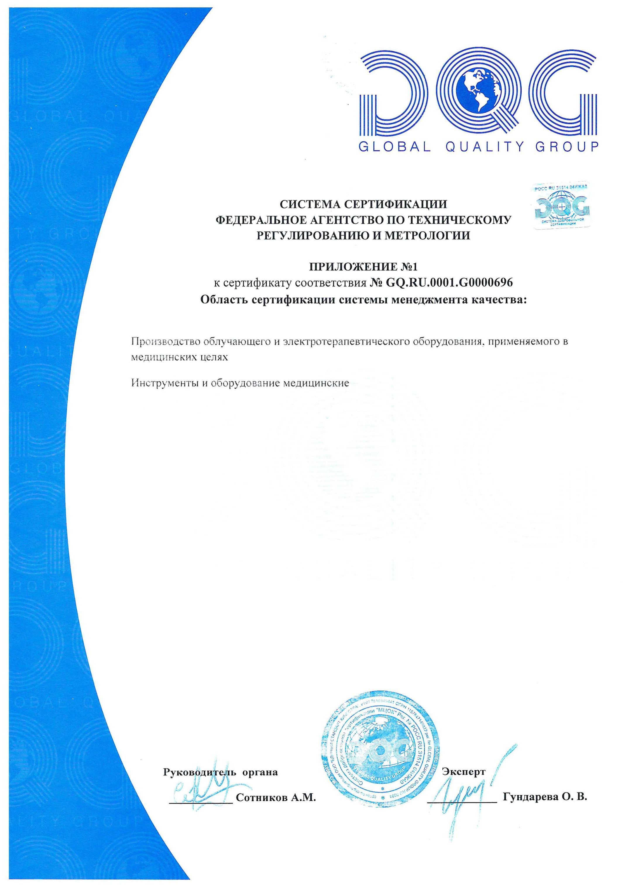 Приложение к сертификату соответствия ISO 9001 - 2015